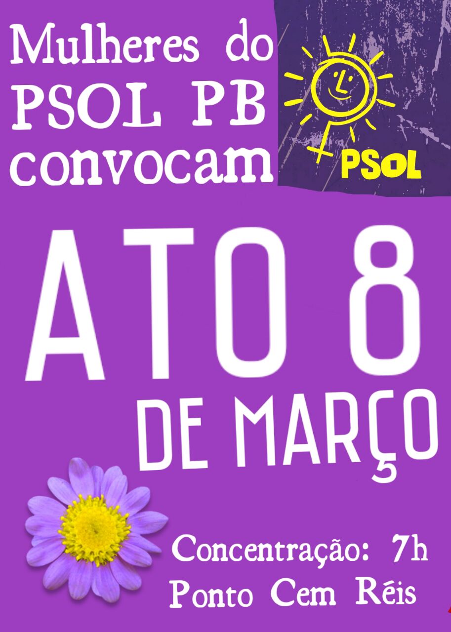 nEm nossa Paraíba, nas diferentes cidades, serão realizadas importantes mobilizações e greves contra os gigantescos casos de violência contra a mulher, os milhares casos de assassinatos e estupros que ocorrem diariamente; contra o desmonte da previdência que atinge todos, mas especialmente as mulheres brasileiras; contra as diferenças impostas no mundo do trabalho; contra o machismo.