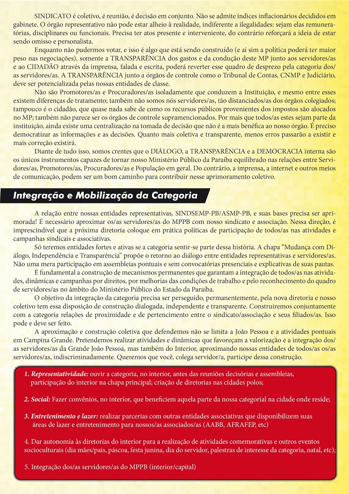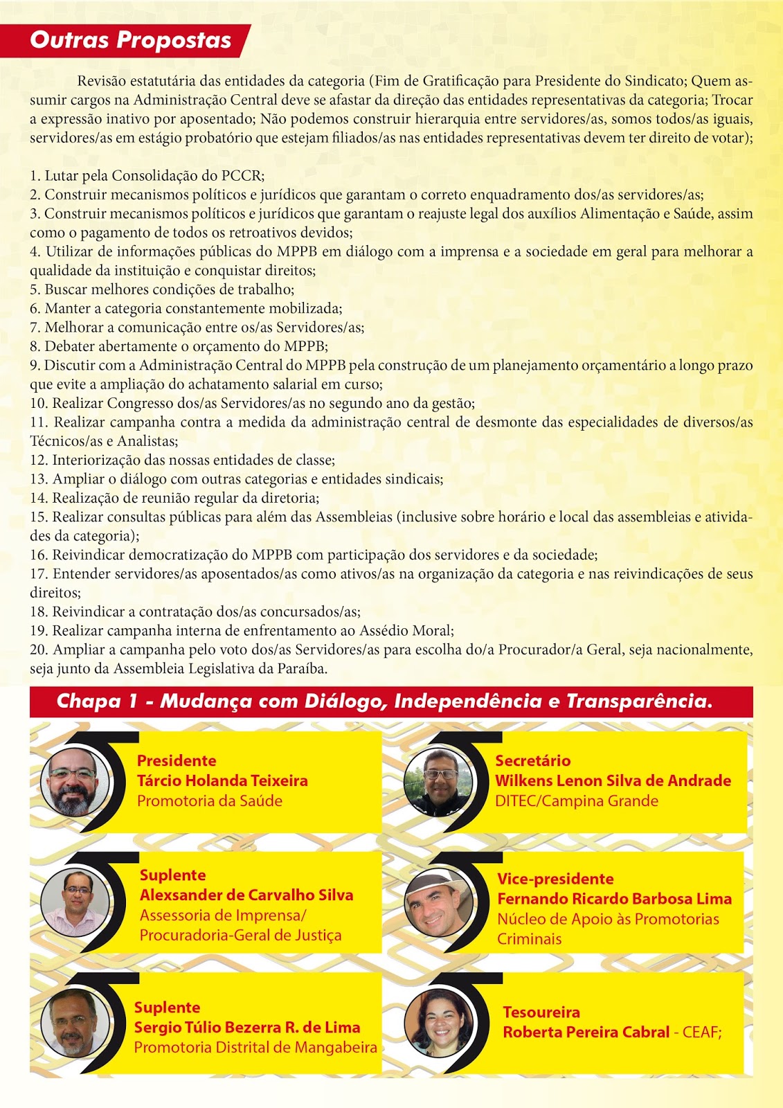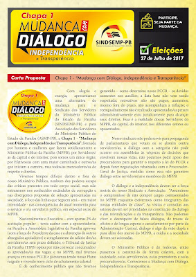 Carta Programa – Chapa 01 – Mudança com Diálogo, Independência e Transparência.