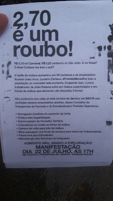 nAumentouna luz, o combustível, a feira e agora a passagem de ônibus, que pula paranR$2,70, impactando (só a passagem) em mais de 10{893e00c25158f9ee8e50627a81cad15ff9fd494d33694c956dcdfc9590e56264} no orçamento das pessoas quenmais usam o transporte coletivo. Empresário e representantes da Prefeitura votaramnpelo aumento no Conselho Tarifário, o Prefeito Cartaxo foi na mesma linha,naprovou o aumento.