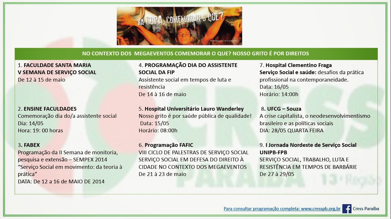 Participe dos Debates e da Posse (15 de maio) da Nova Gestão do CRESS/PB.